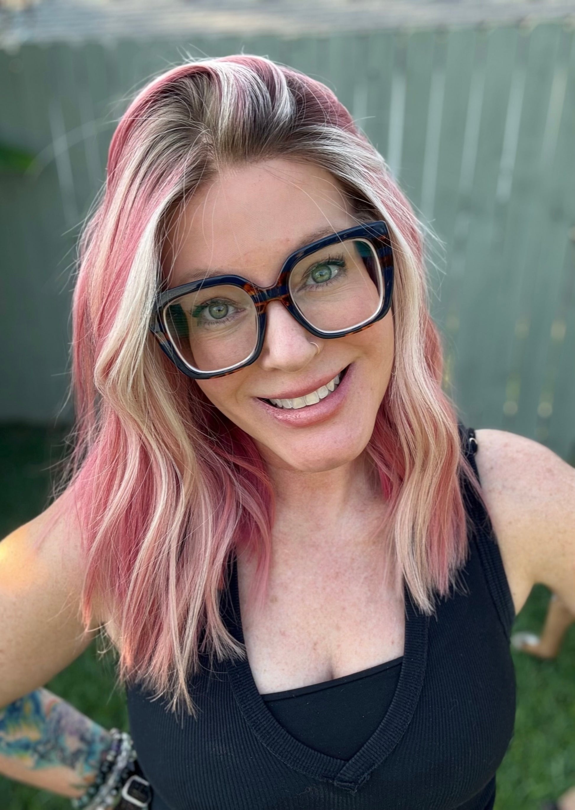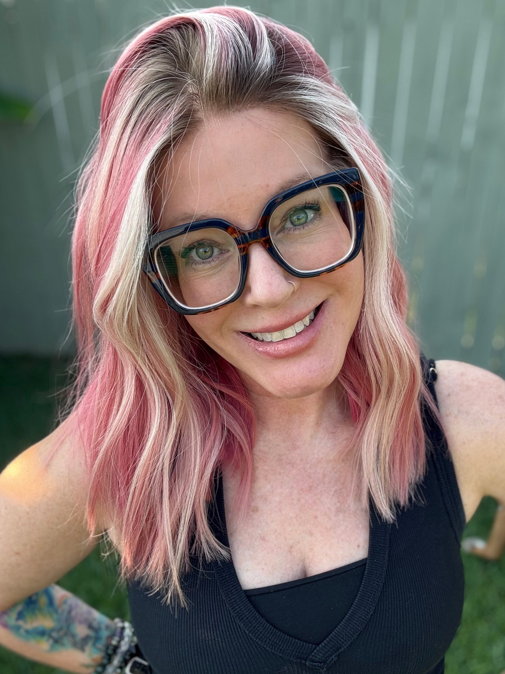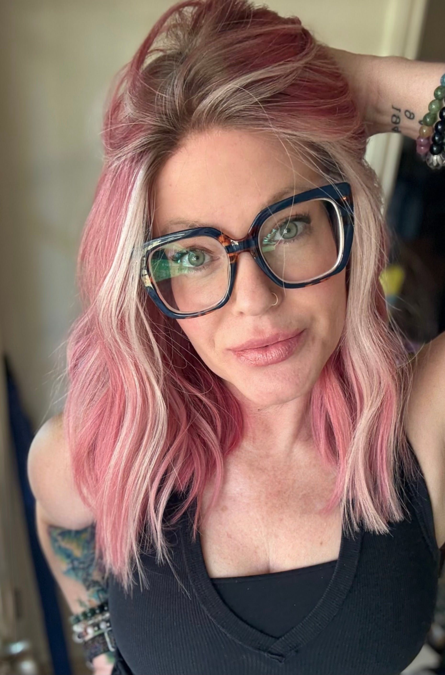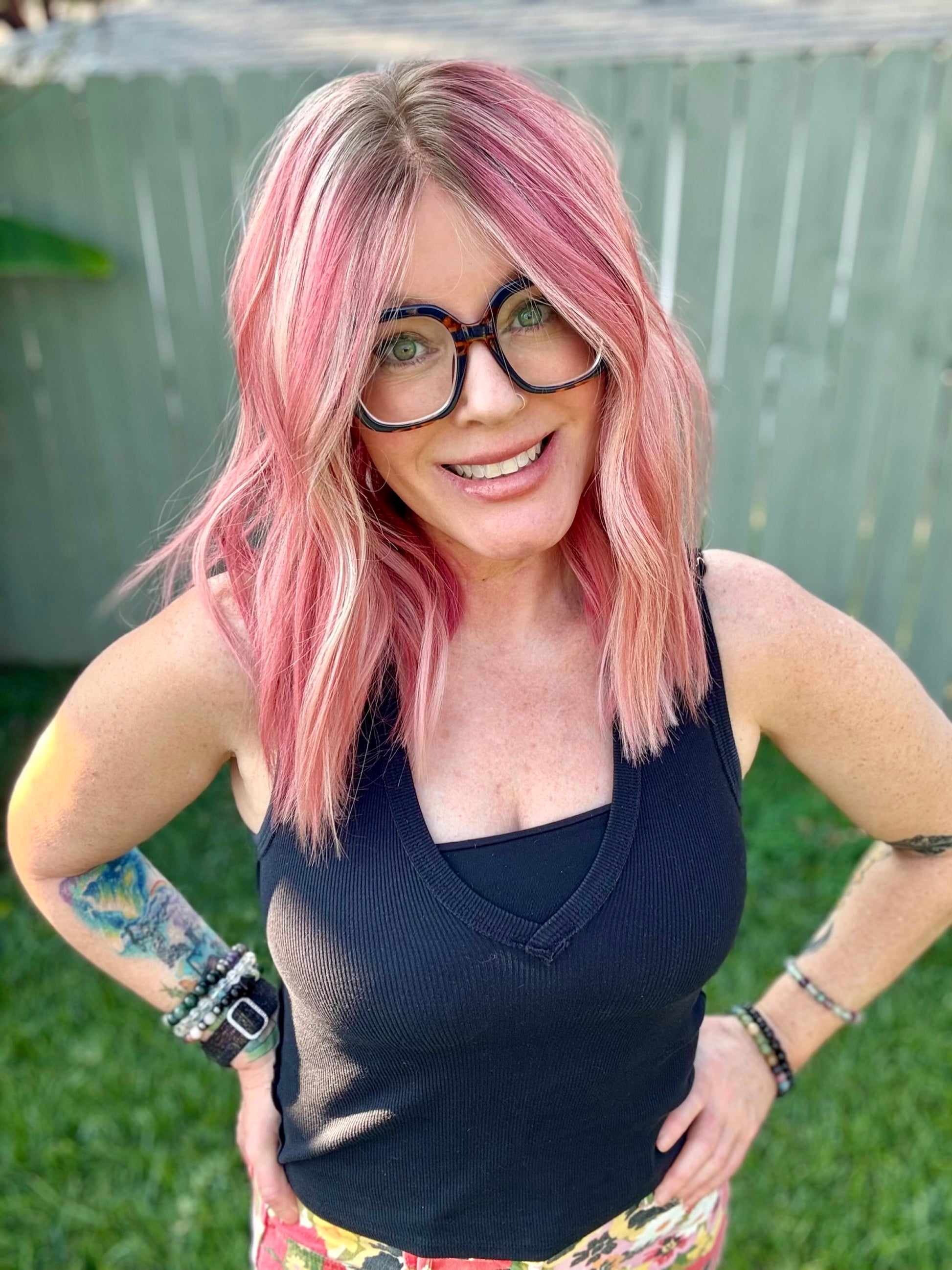 Lover is a mix of pinks, blonde and rose gold with dark blonde ash roots in a 14-15” lob. She has Slavic hair texture and is a single lace top.